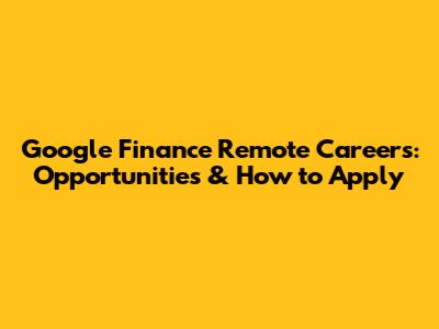 Hey guys! Are you interested in Google Finance remote careers? Landing a remote job, especially with a tech giant like Google, is a dream for many. The flexibility, the challenge, and the prestige all make it super appealing. But navigating the job market and understanding exactly what Google looks for can be a bit overwhelming. Don't worry, we've got you covered. This article will break down the various remote career paths within Google Finance, what skills you need, and how to ace the application process. We will cover everything from the types of roles available to the qualifications Google seeks and the steps you can take to improve your chances of securing one of these coveted positions. Whether you're a seasoned finance professional or just starting out, there's something here for everyone!